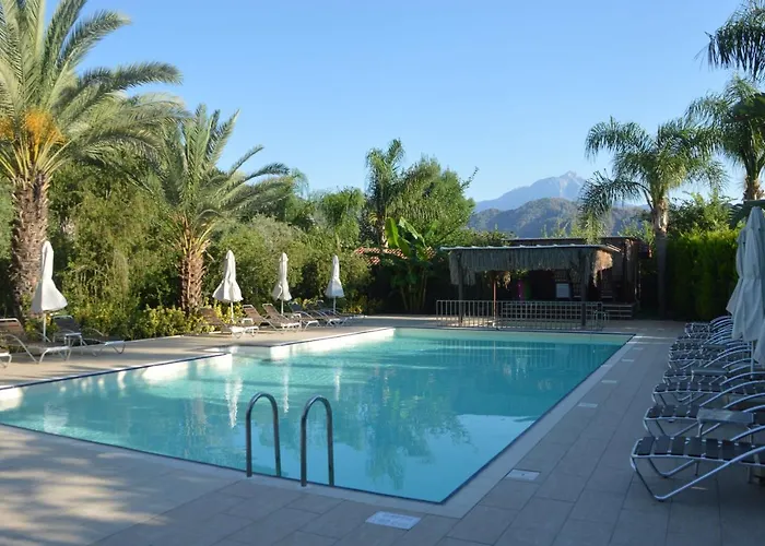 Es gibt außerdem Wasserrutschen, eine Terrasse und Liegestühle vor Ort.